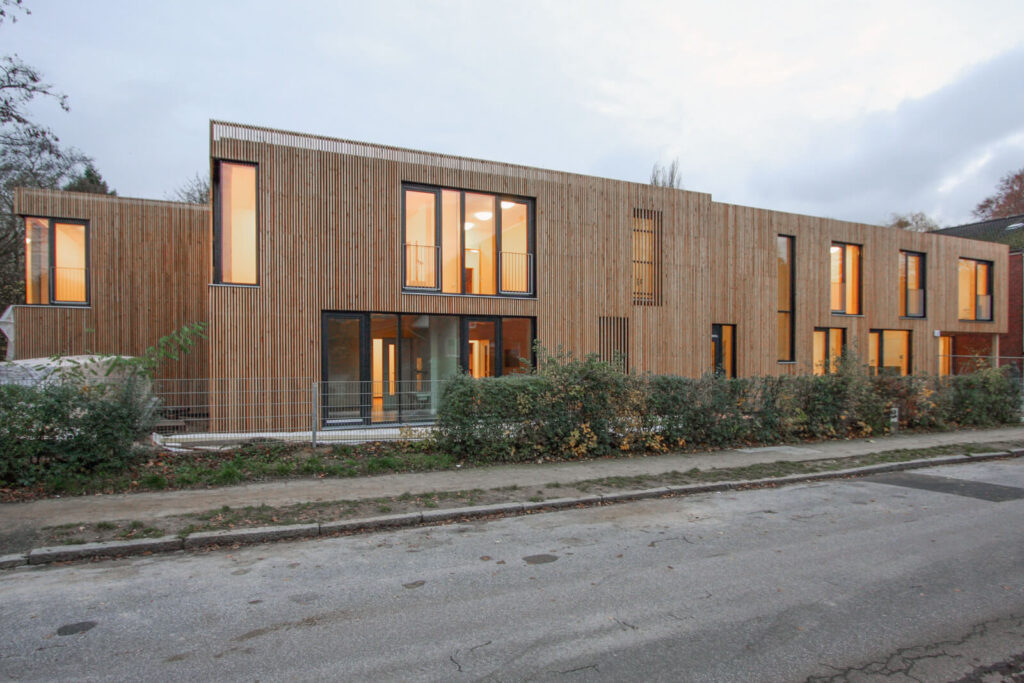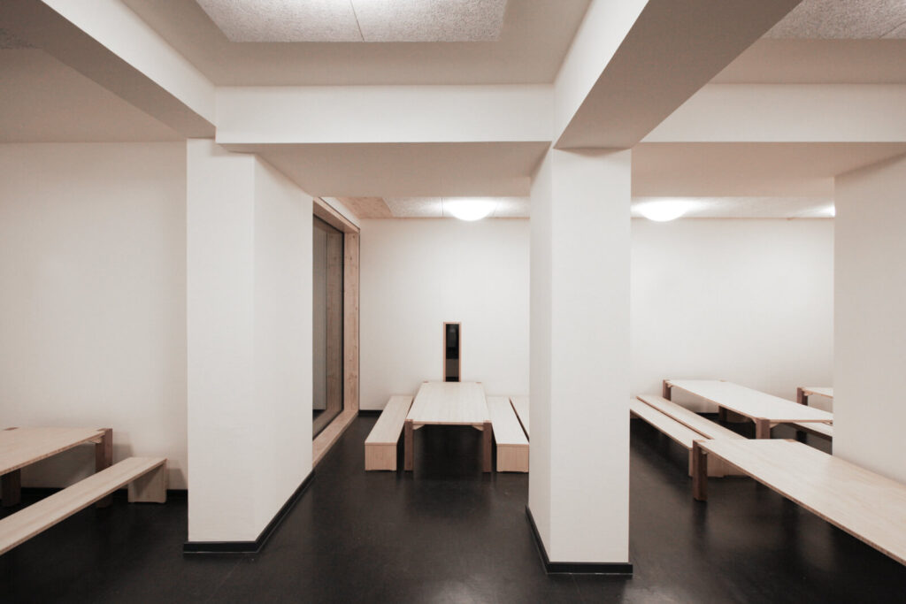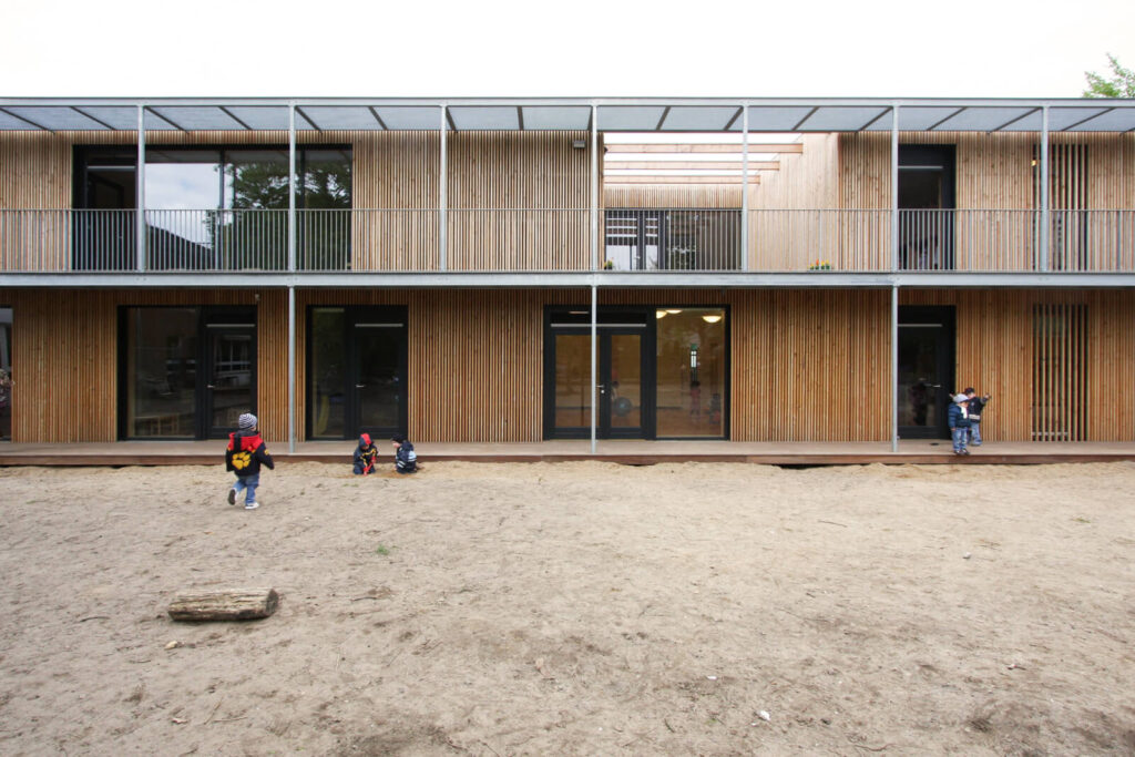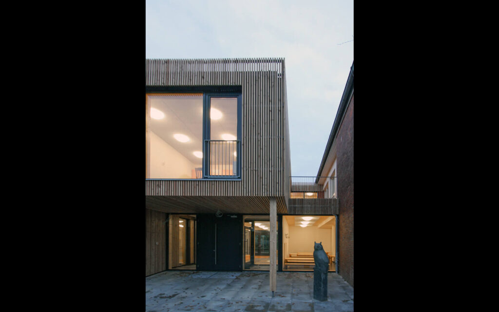 Der zweigeschossige Satteldachbau aus den 1960er Jahren war um einen etwa gleich großen Trakt zu erweitern. Formal gab es keine unbedigten Anknüpfungspunkte, so dass eine eigene Gestalt für den Neubau gewählt werden konnte. Die Nahtstelle von Alt- und Neubau ist als Fuge formuliert. Dadurch ergibt sich eine sinnfällige Eingangssituation. Im Obergeschoss führt der 2. Fluchtweg über einen Patio.