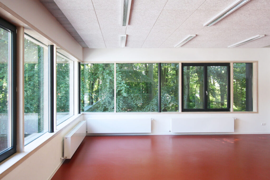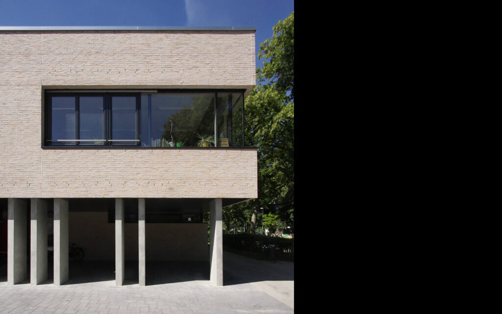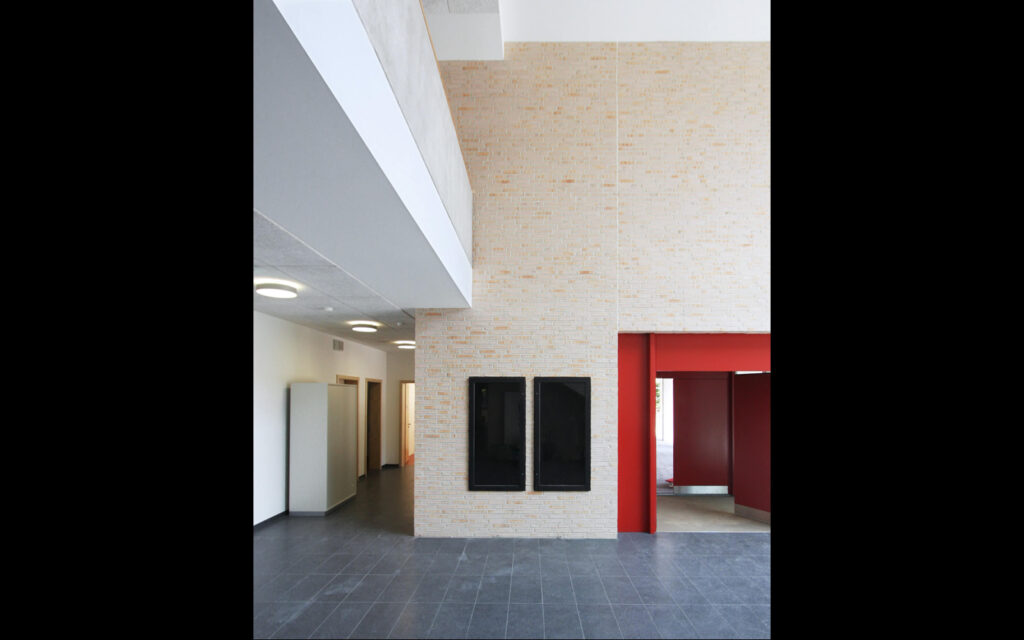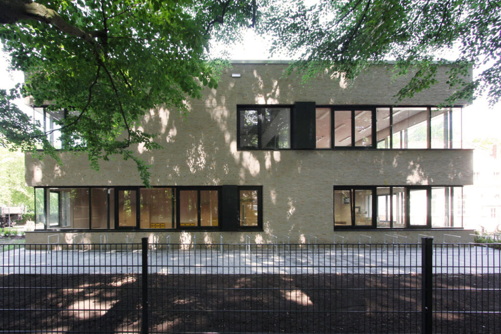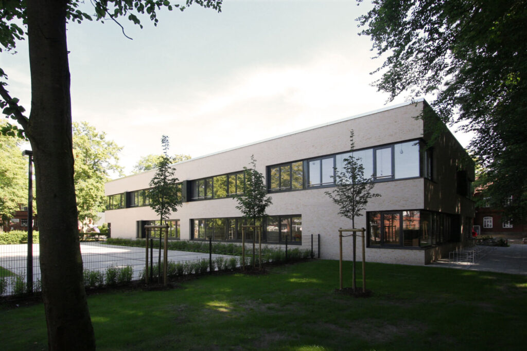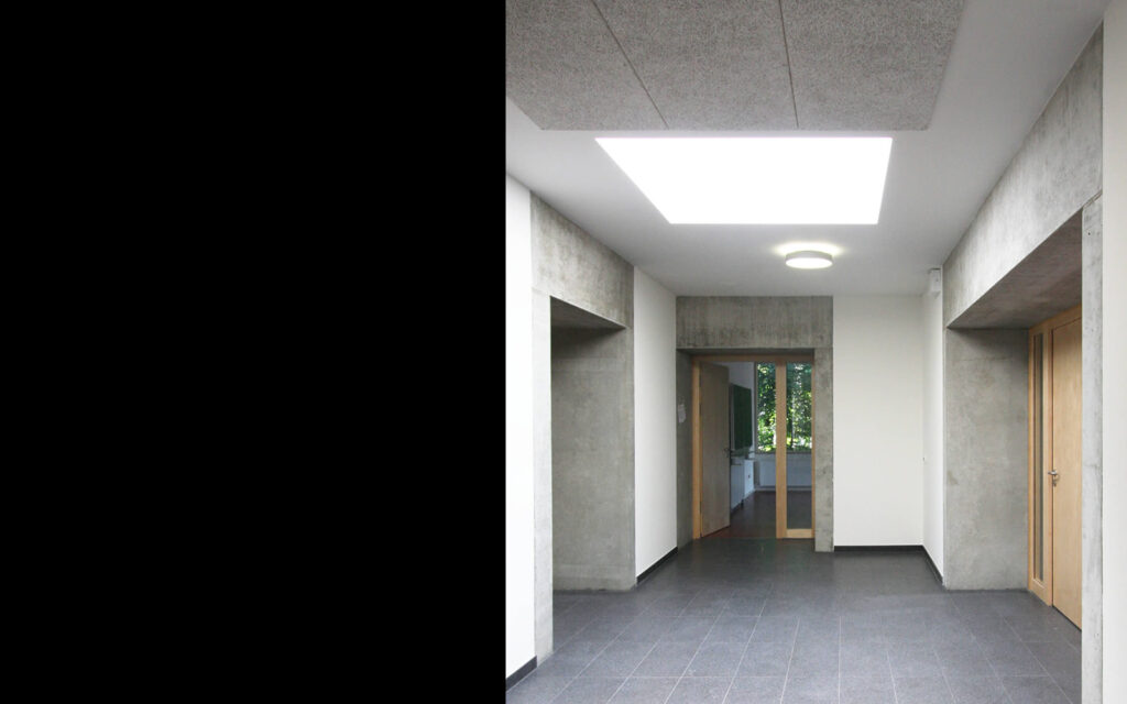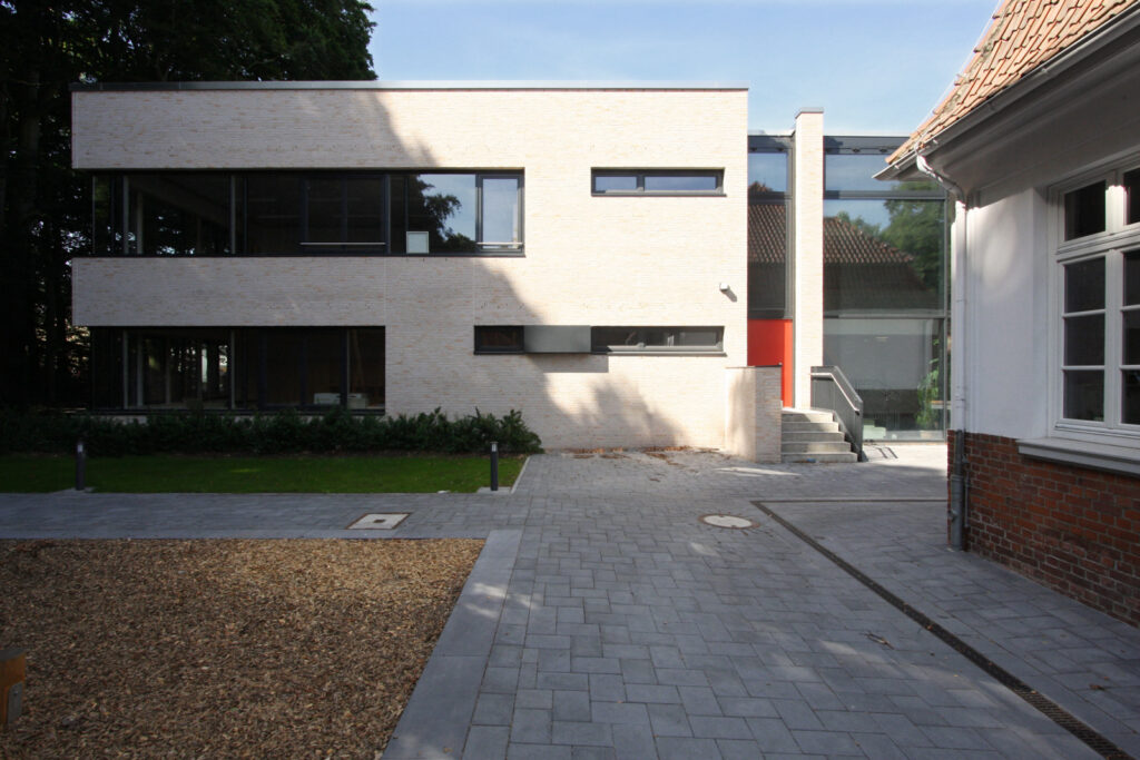 Der Entwurf entwickelt die Neubauten (1.BA: Klassentrakt im Westen, 2.BA: Mensa im Osten) zusammen mit Mauereinfriedungen als Rahmen für den Baubestand. Dahinter steht der Gedanke, die sehr heterogenen Einzelelemente in einen ordnenden Zusammenhang zu bringen. Der Schwerpunkt des Schulcampus wird nach Westen verlagert. Gegenüber der vorbeiführenden Straße bildet der neue Klassentrakt zusammen mit dem Schulvorsteherhaus und dem Platz davor die Adresse der Anlage.